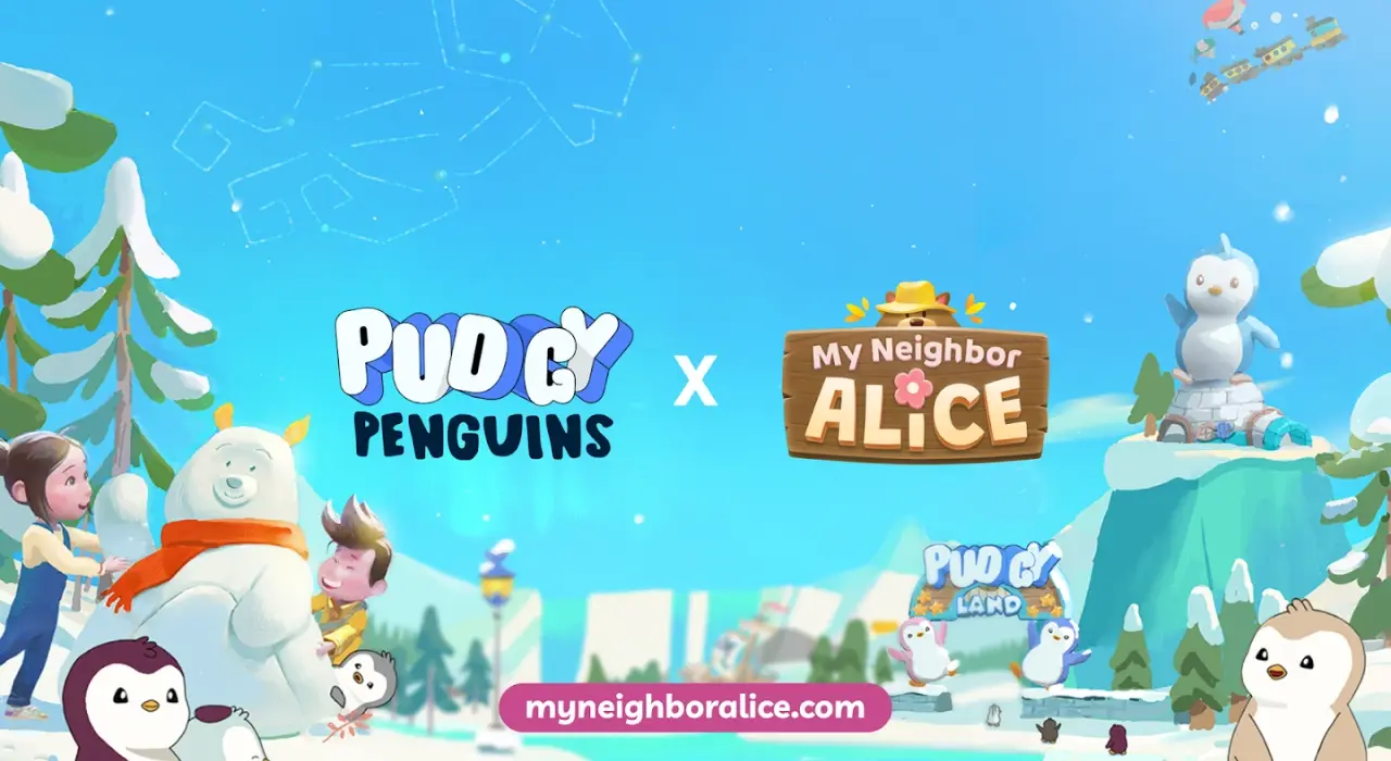 The Pudgy Penguins NFT collection will collaborate with My Neighbor Alice, a popular metaverse Web3 game. A new Pudgy Land area will be added to the game, complete with unique quests and full integration of all NFT collections.