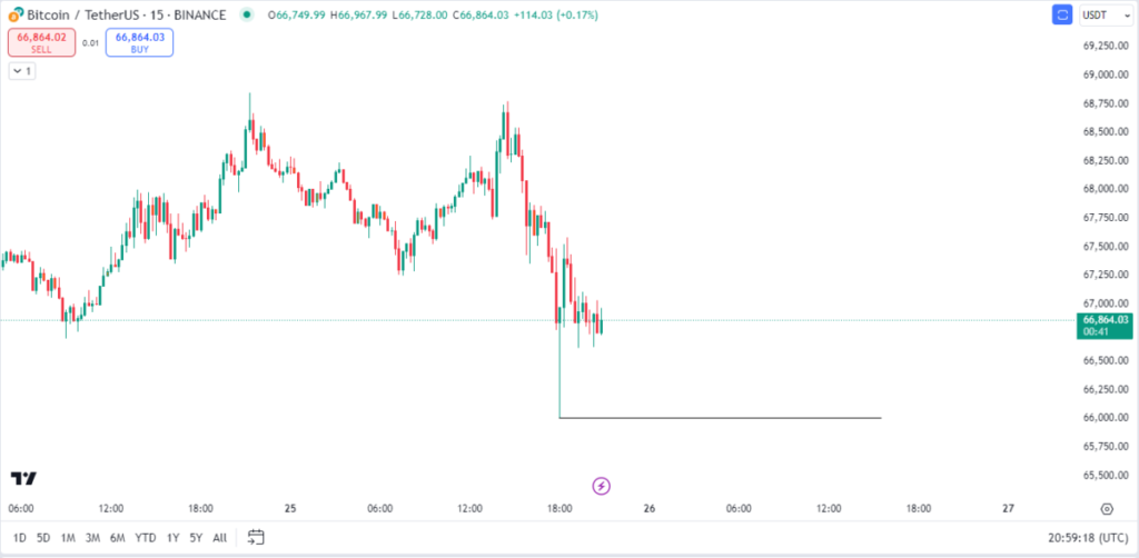 When the Tether news broke, Bitcoin was sitting on accumulated long positions and was attempting to decide on a course. As However, several of the assets soon recovered from the lows since the market had sufficient upward momentum. After dipping around $66,000, Bitcoin rose to nearly $66,700 in a matter of minutes. Ethereum dropped to $2,461.41 and appears ready to rise again.